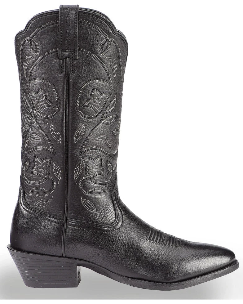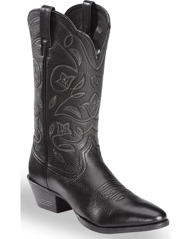 Heritage Prairie boots from Ariat eliminate foot fatigue in style! Featuring a fancy floral stitch pattern on an 11″ leather shaft. Medium round “R” toe.