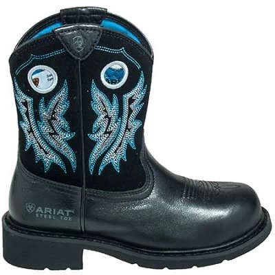 There’s more to these steel toe boots than just good looks, though. As the name explains, you get steel toe protection with these cowgirl boots that are ASTM F 2413-11 FI/75 C/75 EH rated. The EH indicates you’ll receive electrical hazard coverage, too. And the Fatbaby round toes mean extra wiggle room. Your feet will rest of cushioning 4LR footbeds in the women’s boots.Â