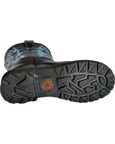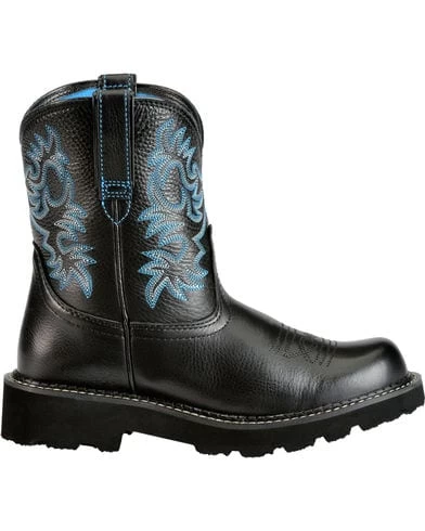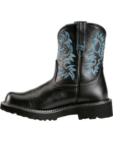 The Fatbaby Ariat cowboy boot features a soft Deertan leather foot topped with a matching 8″ fancy stitched shaft. 1 1/2″ heel on a lightweight, flexible blown rubber lug outsole.