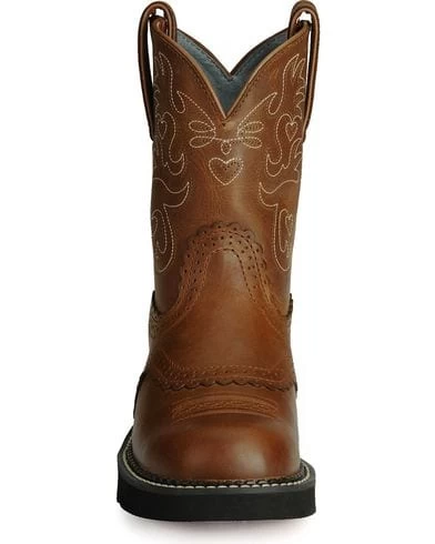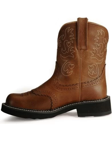 These Ariat Women’s Fatbaby Western Boots have a great look that will fit any style. The full grain leather, comfortable 8″ shaft , ATS technology, and durable EVA outsole provide all day comfort and stability. Whether you are riding, on the dance floor or out on the town these boots will get the job down in comfort and style.