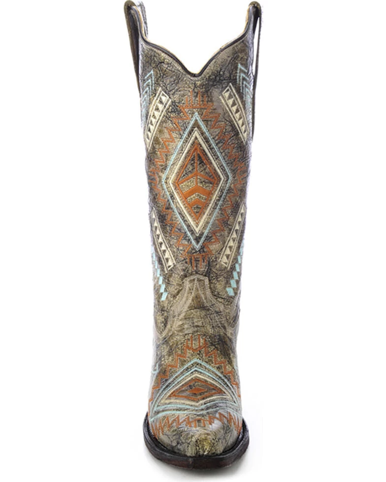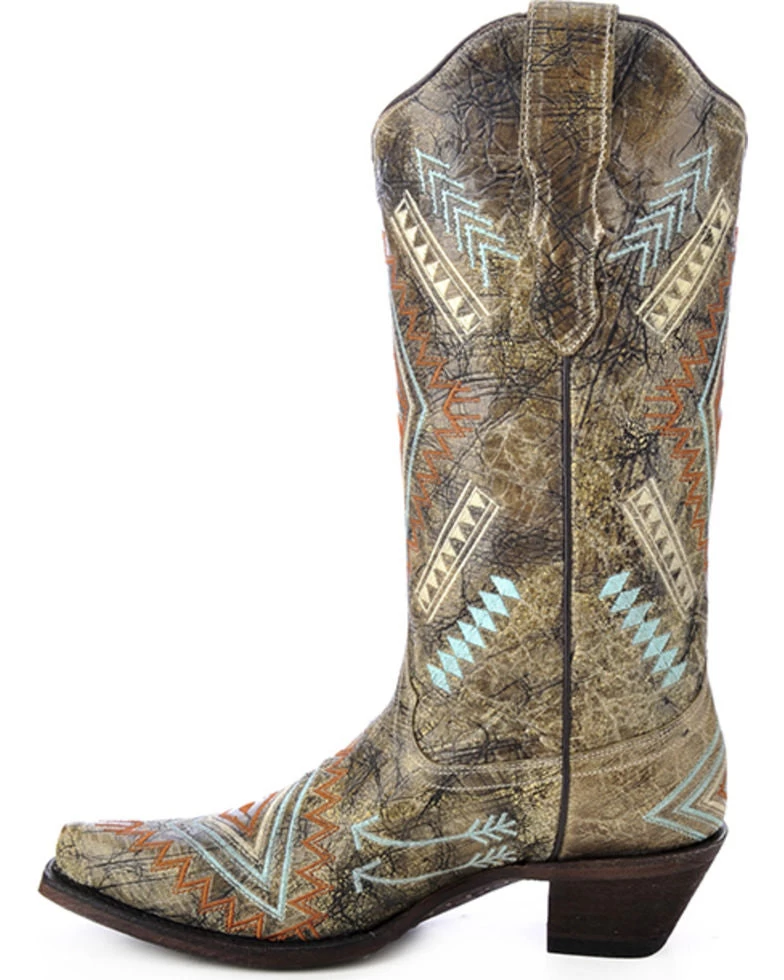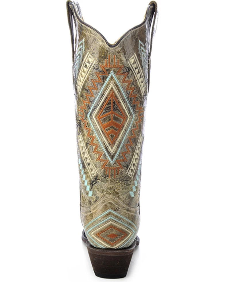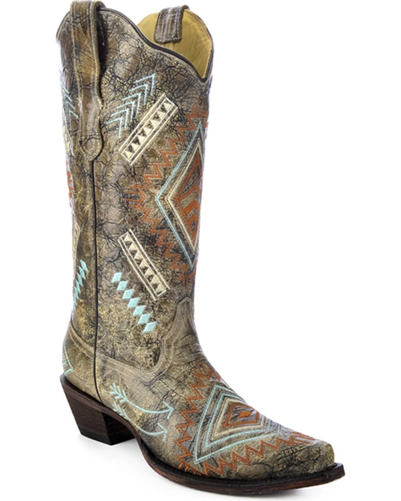 These Corral Diamond Embroidered Western boots are made from genuine leather. These beautiful women’s western boots also have a snip toe for a classic western look.