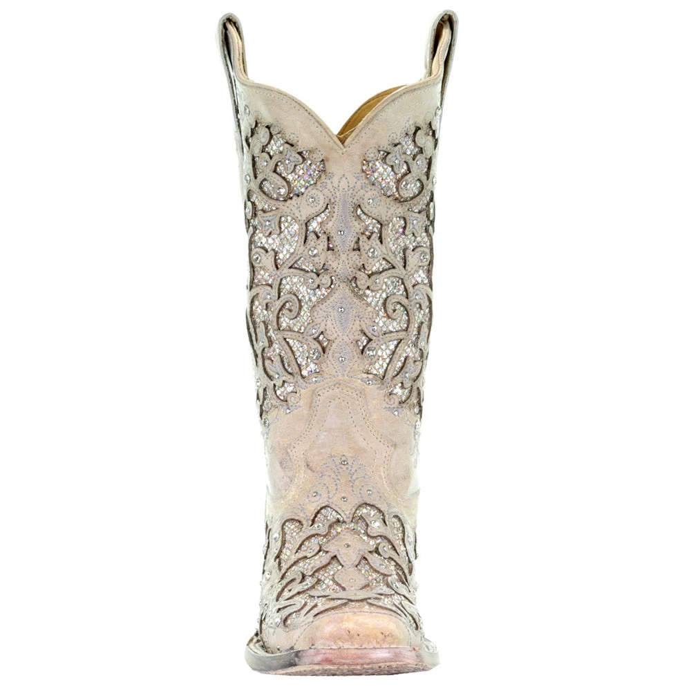 These Corral Glitter & Crystals Cowgirl Boots are beautifully designed and perfect for a country wedding. They are decorated with Swarovski crystals and have an intricate glitter inlay that sparkles and shines. The soft leather lining, cushioned insole, square toe and walking heel make these boots not only stylish but comfortable. Dance the night away in these stunning cowgirl boots from Corral.