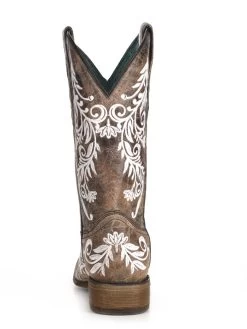 Corral Women’s Brown & White Embroidery Square Toe Boots