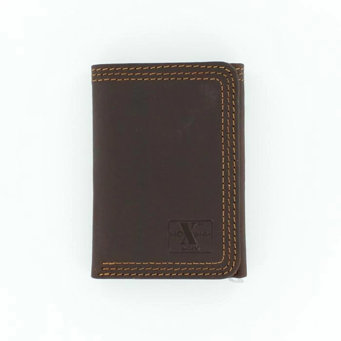 HDX Xtreme Tri-fold wallet has triple, heavy duty contrasting stitching for durability.  HD Xtreme logo imprinted on the front. Interior is denier nylon. Inside features a clear ID slot, credit card slots, removable photo insert and a place for your cash.