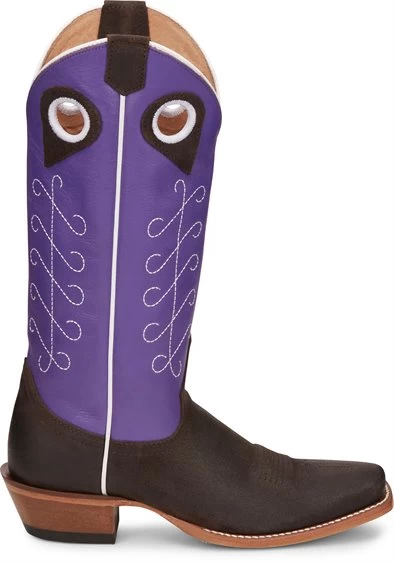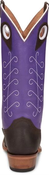 For an energetic and effortless look, the Hattie in Chocolate brown is sure to impress. A bold upper in Royal Purple cowhide commands attention while the Chocolate Brown cowhide demands respect. White stitching in a unique design ties it all together for a classic feminine look. This vintage-inspired boot is both functional and comfortable. It features a cowgirl underslung heel, a medium square toe, and the J-Flex® Comfort System. Our Punchy collection is crafted of durable leathers that are as tough as the women who put them to the test every day.
