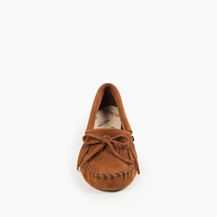 Lovely casual faves with softsole bottoms. First released in 1989, Minnetonka’s popular Kilty moccasin in the original soft sole style are the ultimate in comfortable shoes. Crafted by hand, these moccasins have an almost-barefoot feel with a dash of fringy sstyle on top and around the collar. the highest-quality suede wraps your feet from toe to sole. This durable footwear is designed to last.