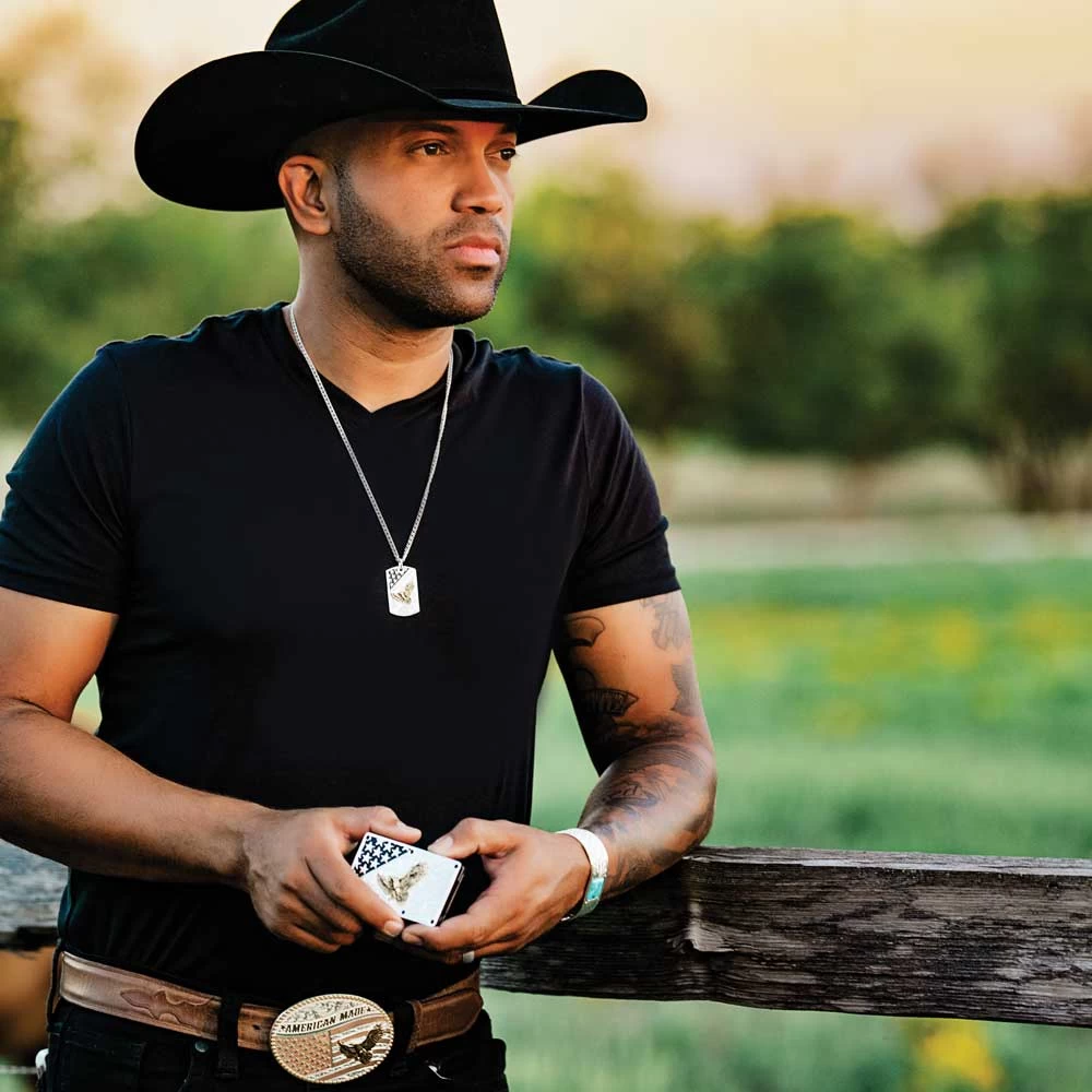 Created in collaboration with Coffey Anderson this line features American Made products that showcase our shared values of faith, family, and freedom. Designed with a stunning stars and stripe motif this card case is not only a secure way to hold cards and cash it’s a wonderful way to show off your American spirit. A soaring gold tone American bald eagle is centered over a silver tone American flag detailed with western filigree and stars. Black paint creates depth and drama in the background of the case. The center on this handsome case easily expands to hold several cards as well as cash.
