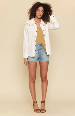 Mystree Women’s Embroidery Yoke Shirt Jacket – Ivory