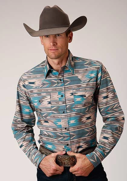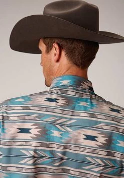 Men’s Long Sleeve Horizontal Aztec Print Western Shirt