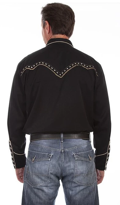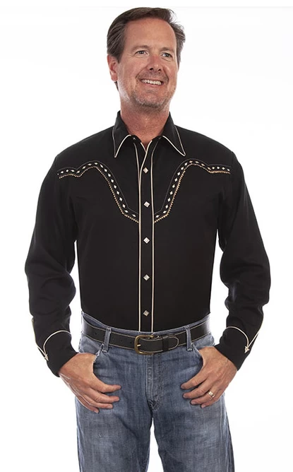 Men’s Long Sleeve Embroidered Diamonds Shirt By Scully P-898