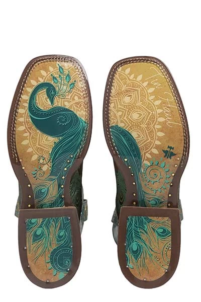 - Square Toe Brown with Hand Painted Peacock Feathers Vamp