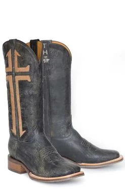 - Square Toe Waxy Black Vamp & Shaft w/Inlayed Cross Hair on Hide
