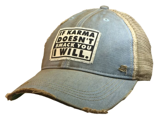 Vintage Distressed Trucker Cap “If Karma Doesn’t Smack You I Will”