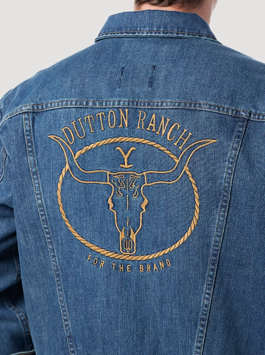 Few silhouettes are as legendary as Wrangler’s Cowboy Cut® denim jacket. From the Wrangler® x Yellowstone collection, this everyday staple will feel right at home in the closet of any Dutton Ranch fan. It’s crafted from 100% cotton denim for unparalleled comfort and quality. Best of all, it comes with chest flap pockets, the ‘W’ stitching, side pockets for your essentials, and branded hardware for a touch of authenticity. This denim jacket comes finished with the Dutton Ranch’s logo on the back in gold embroidery. along with a steer head, lasso, and the hooked, rocking-Y only the most loyal ranch hands receive.